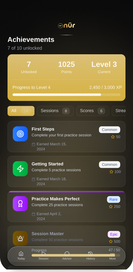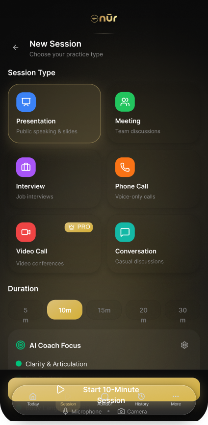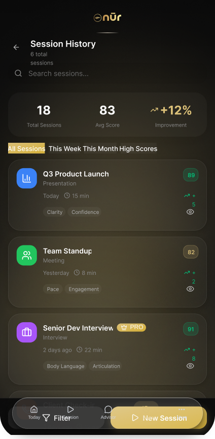 Progress happens gradually. Nur.Ai surfaces long-term voice trends to show how your communication evolves over time. These insights support sustainable improvement built through awareness, not correction.